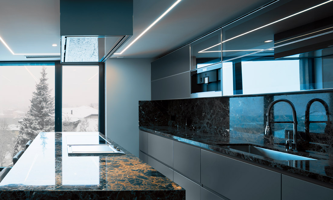 Interage entre o preto e o branco, harmonizando com outras tonalidades, gerando ambientes elegantes e em perfeito equilíbrio na composição com tecidos e madeirados.